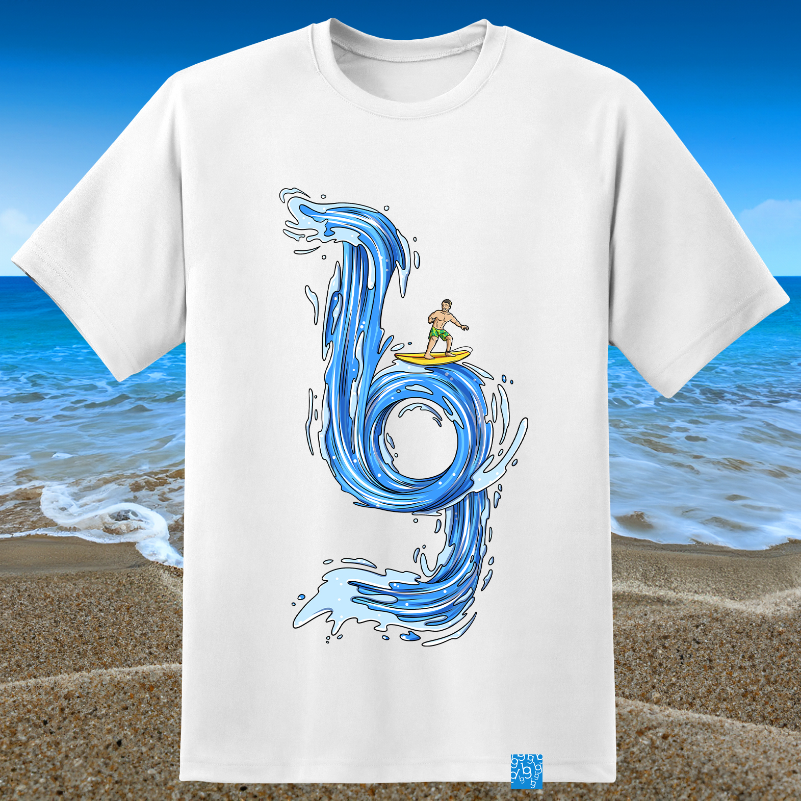 Majica na prsima ima “Braco Gajić logo” u više nijansi plave boje i malog Bracu kako surfuje.